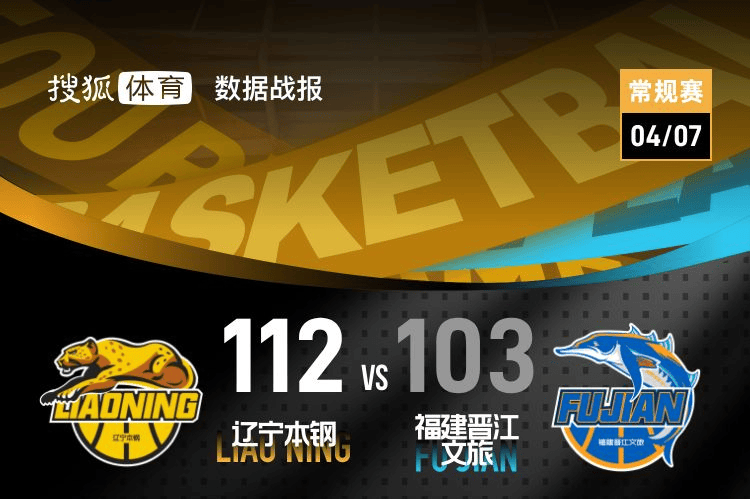 【搜狐体育战报】北京时间4月7日CBA常规赛第36轮,主场作战的辽宁本钢以112-103击败福建晋江文旅。赵继伟27分6篮板8助攻,昆汀·皮特森44分4篮板2助攻。