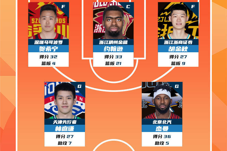 CBA第35轮最佳阵容:约翰逊高效领衔 贺希宁杰曼在列