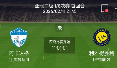 2025-2026赛季亚洲冠军联赛二级联赛(AFC Champions League Two,简称亚冠乙)即将进入关键的淘汰赛阶段。北京时间2026年2月11日,土库曼斯坦新晋霸主阿卡达格(FK Arkadag)将在其主场阿什哈巴德体育场迎来沙特豪门利雅得胜利(Al-Nassr FC)的挑战 。这场比赛不仅是两支球队在正式国际赛事中的首次交锋,更是中亚足球行政意志与西亚金元足球资本在亚足联竞赛体系改革背景下的一次深度碰撞 。